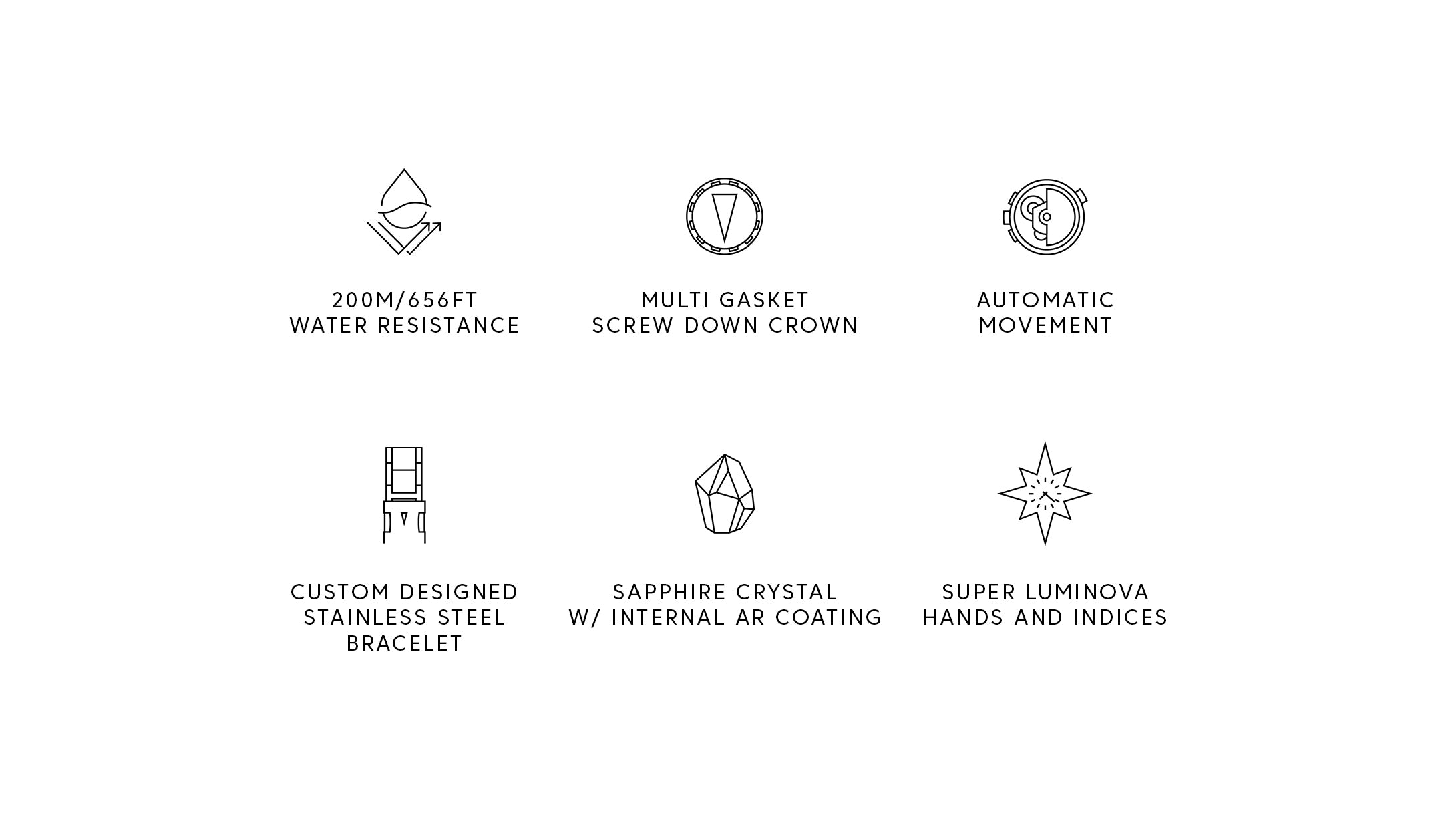The Open Water 38 is fundamentally a dive watch, offering an impressive 200m of water resistance. It features a screw-down crown that employs a triple gasket piston-like design to keep out water and debris.
