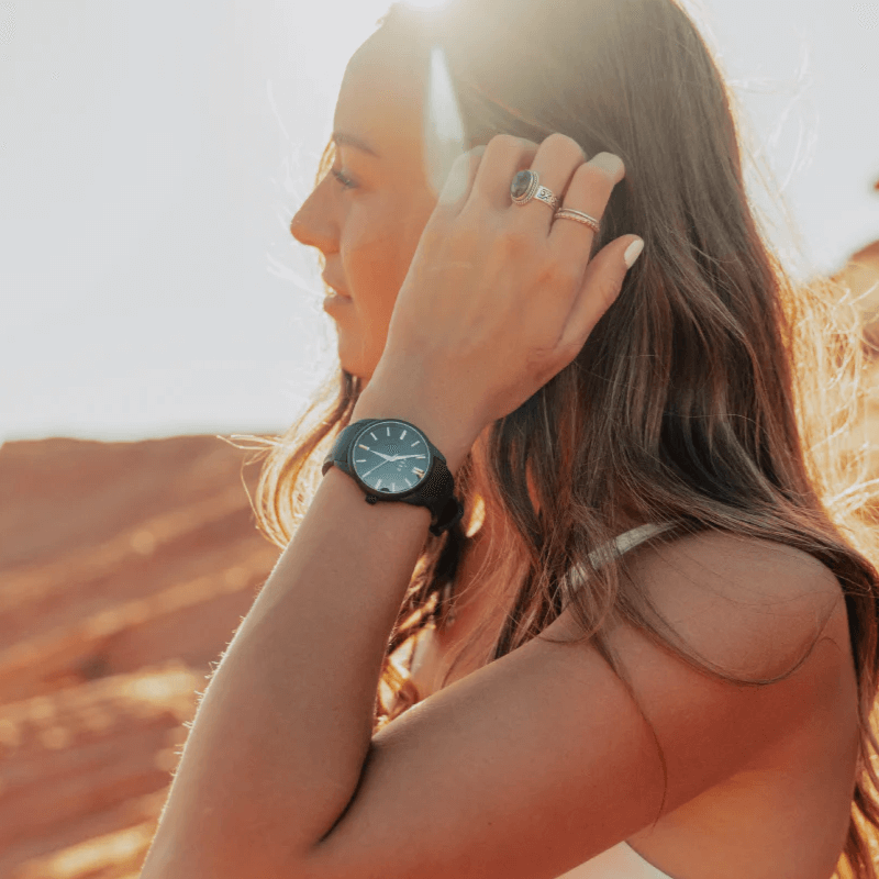 Each dial color in this series was inspired by a favorite location here in the Pacific Northwest. The dauphine hands and raised indices are filled with Super LumiNova for high legibility. And each dial has a unique texture that allows it to show off when light hits it.