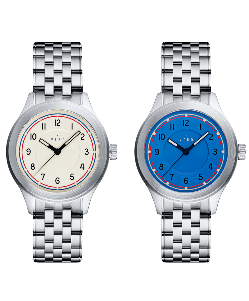 The Meridian's dual tone finish highlights the stepped structure of the case and bracelet. The flat sapphire crystal sits flush in the 315L stainless steel, allowing the Meridian watches to be as handsome as they are durable.