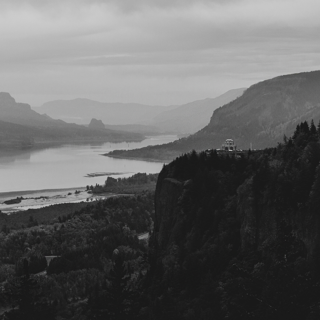 Inspired by the view from Crown Point and the Vista House overlooking the Columbia River Gorge, the dark blue dial reflects the river below as it winds between basalt cliffs.