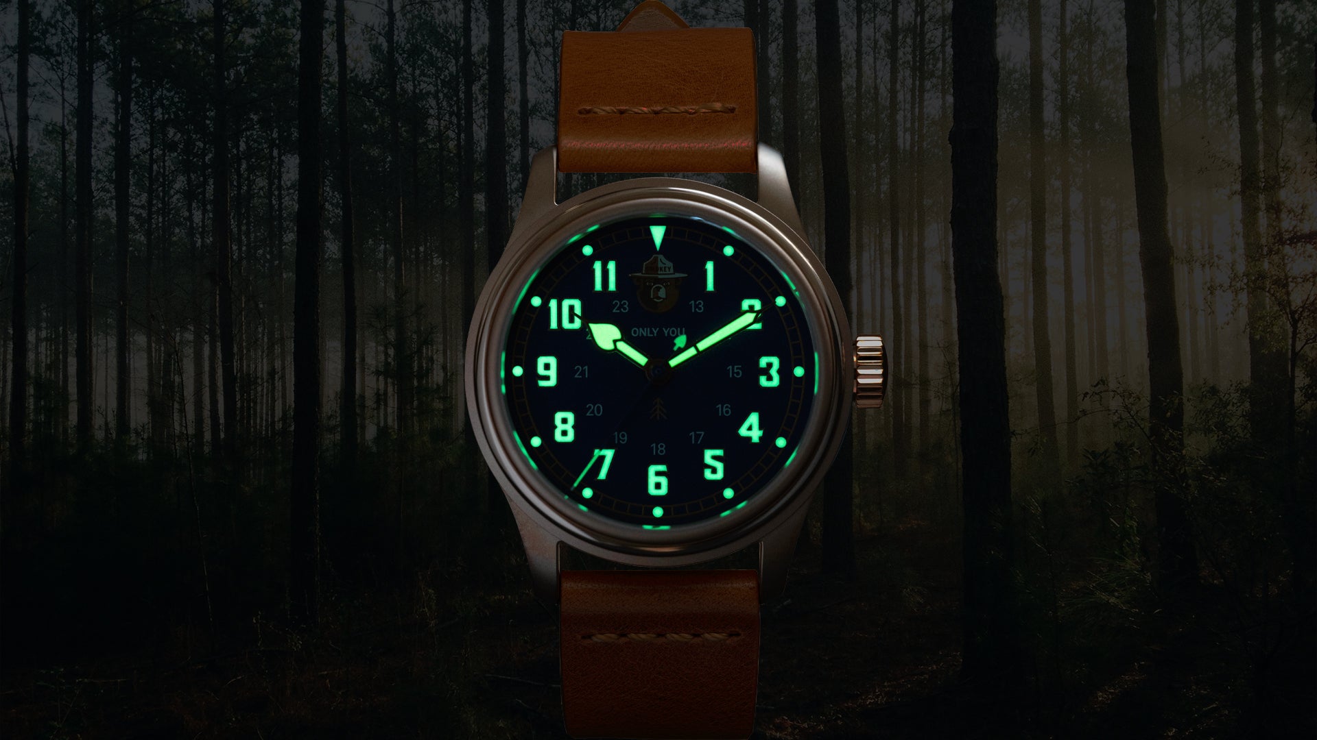 The automatic movement in the Smokey Bear 80th Anniversary Watch features a 41hr power reserve that winds through the natural motion of your wrist, eliminating the need for batteries or manual winding.