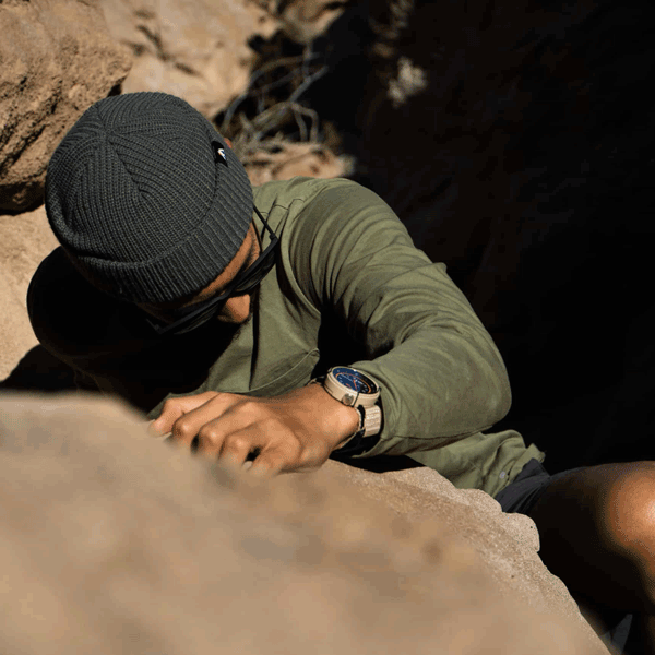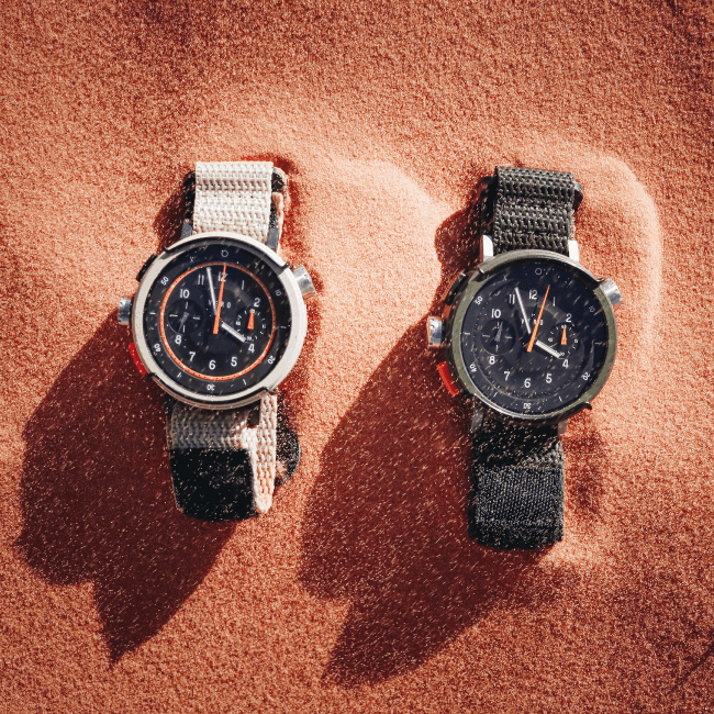 Built with rubberized steel bull horns and a sapphire crystal, the Workhorses are adventure-grade field watches.