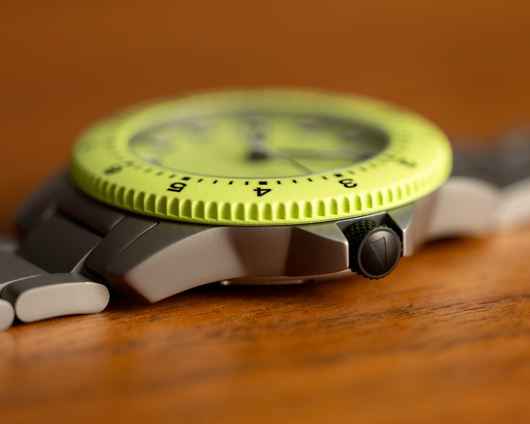 Having a durable crystal on a dive watch is crucial. In deeper waters, a sapphire crystal remains intact, unlike a mineral glass crystal that can crack or splinter under pressure. Sapphire crystals are naturally anti-reflective and boast a hardness of 9 out of 10 on the Mohs scale, with only diamonds being harder, scoring a perfect 10.