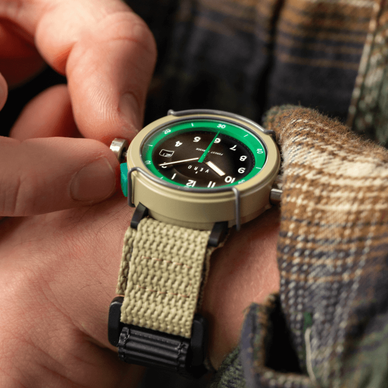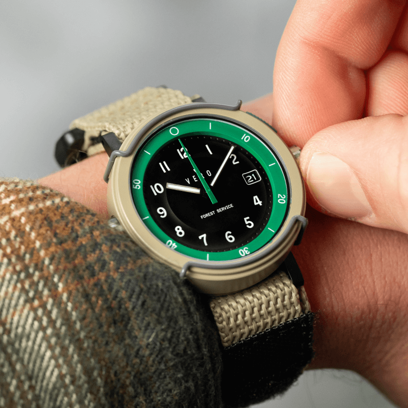 The Forest Service Edition watches come with a Seiko Kinetic movement with 6-month power reserve, and sweeping hand indicator.