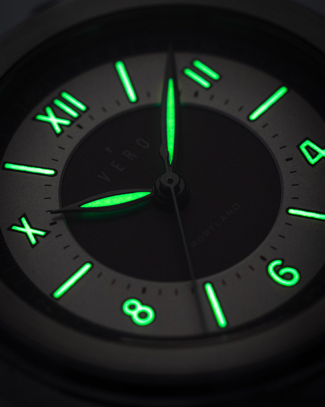 The Meridian Portland Sport stands out with a healthy dose of Super Luminova on the hands, numerals, and dial markers. With a sufficient UV charge, this lume can glow up to 15 hours.